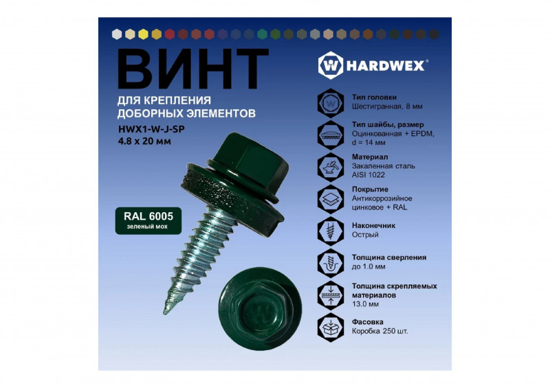 Саморез кровельный HWX1-W-J-SP уп/50шт 4,8х20мм TM Hardwex в наличии по цене 392 рублей в интернет-магазине «ЖЕЛЕЗО» в в Нижнем Новгороде. Мы предлагаем лучшую стоимость на категорию саморезы кровельные с шайбой . Приобрести Саморез кровельный HWX1-W-J-SP уп/50шт 4,8х20мм TM Hardwex можно оформив заказ в интернет-магазине, или отправив заявку по почте, а также по телефону 8 (800) 444-50-26 или в магазине. Бесплатная доставка при заказе от 1000 руб.