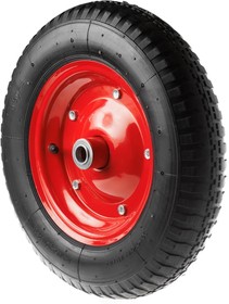 Колеса пневматические со стальным ободом и подшипником используются для комплектации различных тележек и тачек как бытового, так и промышленного назначения. Конструкция модели включает в себя металлический обод, резиновую шину, пневматическую камеру. Этот тип колес часто можно встретить в садово-огородных хозяйствах. Низкая цена и удобство эксплуатации обеспечили механизму широкую популярность.